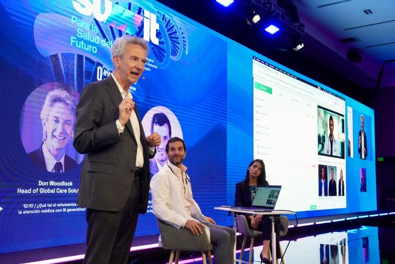 La dinámica de su presentación se centró en una experiencia demostrativa, donde Woodlock recreó una consulta médica en vivo entre un doctor y una paciente simulada. En la escena, el sistema de inteligencia artificial escuchaba la conversación y generaba automáticamente la ficha clínica, los diagnósticos, las órdenes de exámenes y los tratamientos. Todo el proceso se desarrolló sin intervención manual, mostrando cómo la tecnología puede integrarse en el trabajo cotidiano de los profesionales de la salud sin interrumpir la interacción con el paciente.