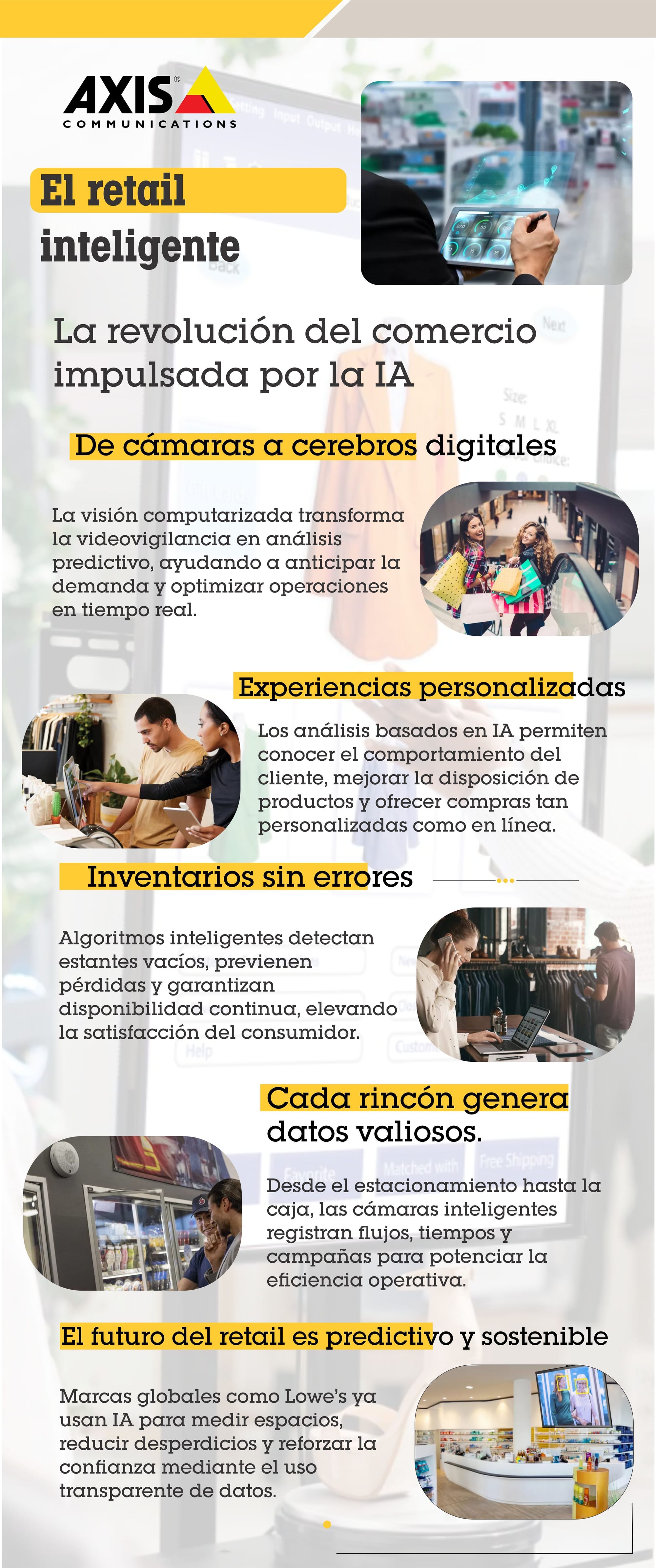 La inteligencia artificial ha dejado de ser una promesa para convertirse en una herramienta clave del éxito minorista. Convertir las cámaras en asistentes inteligentes no solo mejora la seguridad, sino que impulsa las ventas, optimiza recursos y redefine la experiencia del cliente.