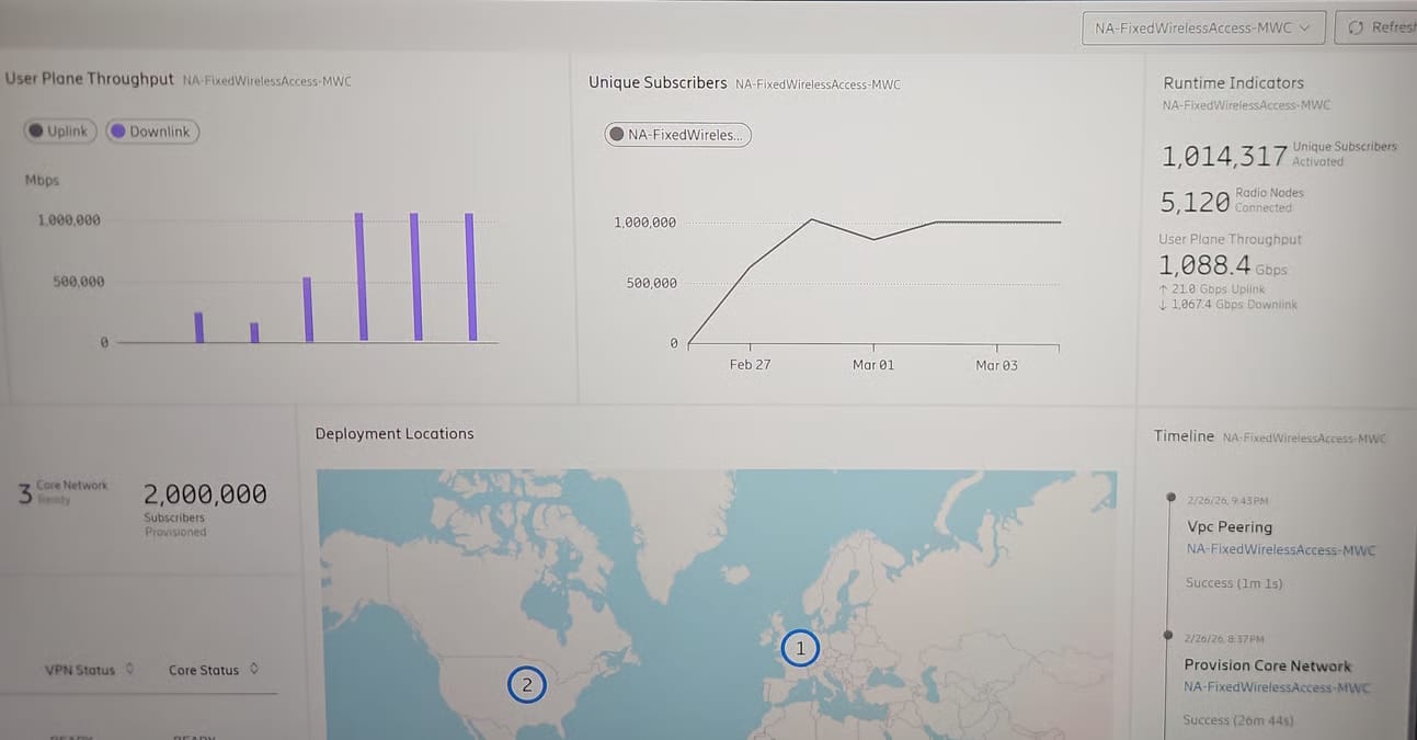 Ericsson presentó en MWC 2026 una demostración de Ericsson On-Demand con un núcleo 5G como servicio capaz de operar a 1 Tbps, soportar 1 millón de suscriptores simulados y ejecutarse completamente sobre Google Cloud. La empresa indica que se trata de uno de los mayores núcleos móviles en alcanzar ese nivel de capacidad y escala en un entorno público hyperscale.sss