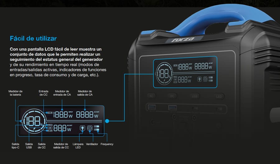 Estos novedosos generadores eléctricos cuentan con pantalla LCD de fácil lectura y salidas para conectar dispositivos alimentados por corriente alterna, por corriente continua (incluyen puerto tipo automóvil) y dispositivos USB. También poseen la tecnología TurboPower, que aumenta la potencia del generador al doble y gestiona sin problemas los incrementos inesperados de potencia con el impulso de una turbocarga.
