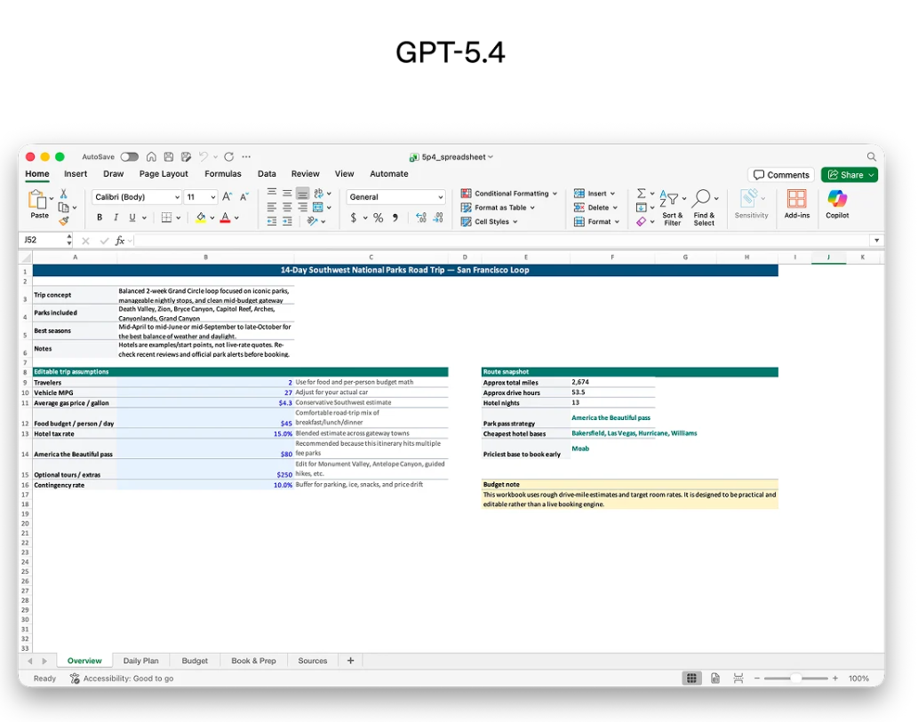 Ejemplo visual del foco de GPT-5.4 en hojas de cálculo para trabajo profesional. | Créditos: OpenAI