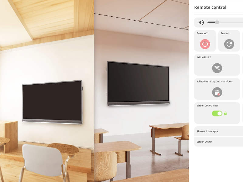 El sistema permite encender o apagar pantallas, ajustar el volumen o bloquear el firmware desde una consola centralizada. Esta capacidad elimina desplazamientos del personal técnico y mejora la eficiencia operativa al reducir los tiempos de respuesta ante incidencias.