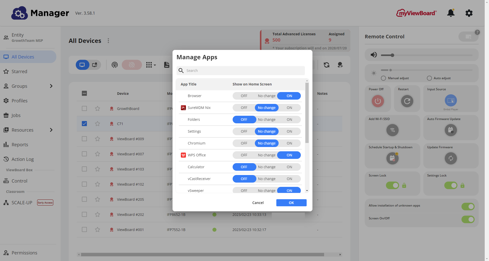 Manager Advanced representa la versión más completa de myViewBoard Manager, pensada para organizaciones que necesitan una gestión tecnológica de gran escala. Su diseño amplía las funciones de control, soporte remoto y automatización, convirtiéndose en una herramienta estratégica para departamentos de TI que administran múltiples dispositivos ViewSonic en red.