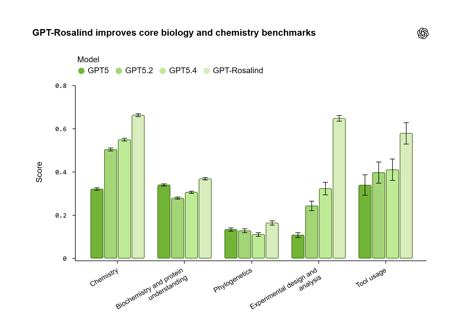 OpenAI acompaña esta presentación con resultados de evaluación en tareas ligadas a química, comprensión de proteínas, filogenética, diseño y análisis experimental y uso de herramientas. La compañía afirma que GPT-Rosalind logró liderazgo en BixBench y superó a GPT-5.4 en 6 de 11 tareas de LABBench2, en una señal de posicionamiento técnico frente a su propia familia de modelos.