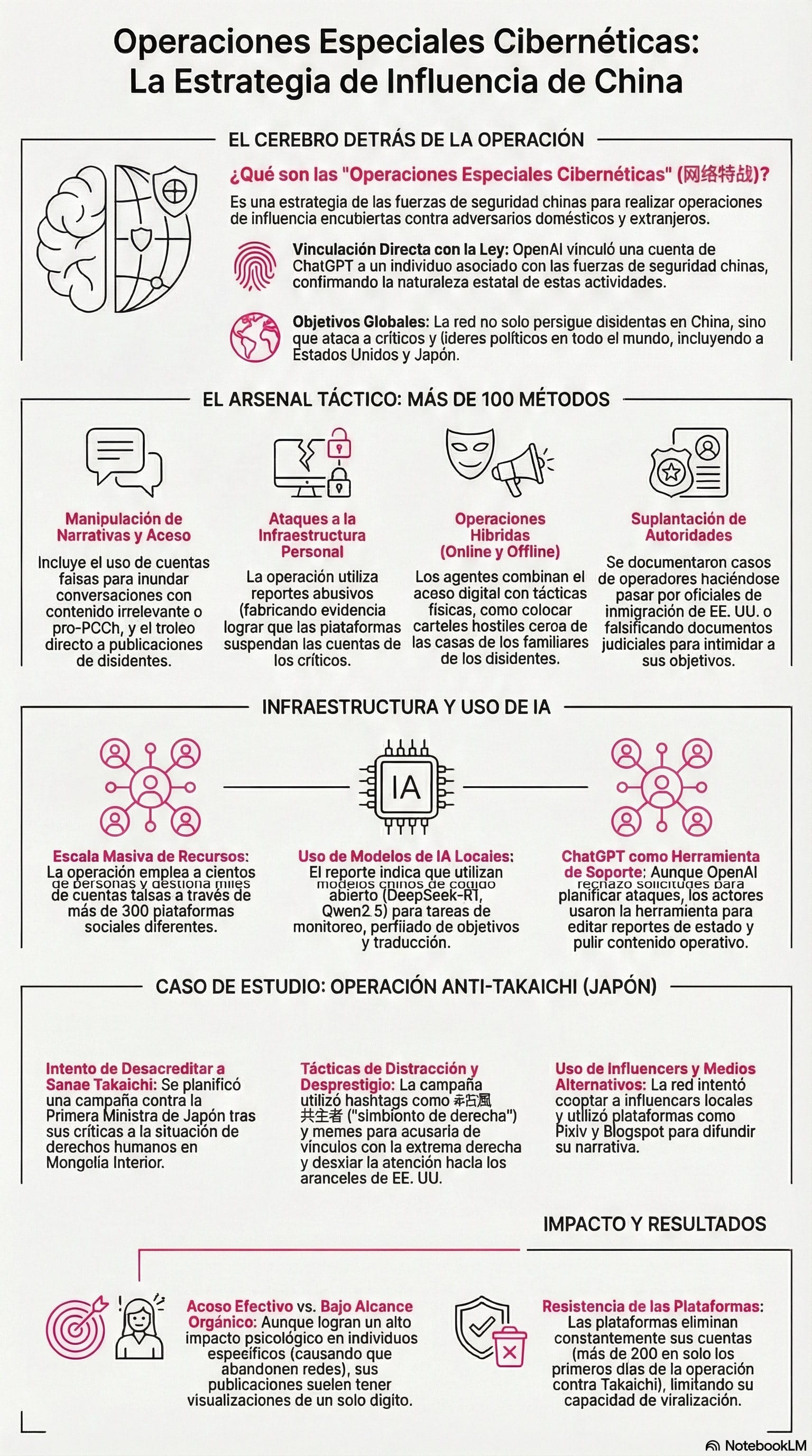 Una investigación técnica titulada “Disrupting malicious uses of our models: an update, February 2026” elaborada por OpenAI revela la estructuración de campañas masivas de influencia encubierta. Este análisis advierte a la alta gerencia sobre tácticas sistemáticas que emplean inteligencia artificial para silenciar objetivos estratégicos y manipular la opinión pública en múltiples plataformas.