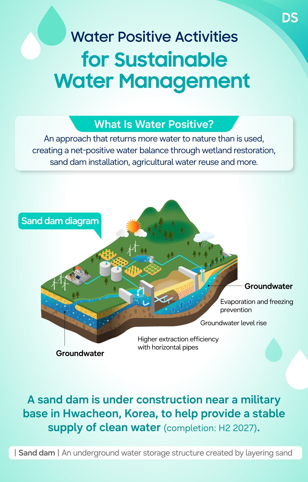 En paralelo, Samsung expuso acciones de educación sobre agua, saneamiento y conservación para estudiantes, junto con iniciativas de apoyo a comunidades vulnerables mediante acceso a agua potable segura. El material también destaca una obra de presa de arena en Hwacheon, Corea, cuya finalización está prevista para el segundo semestre de 2027 con el objetivo de asegurar un suministro estable de agua limpia.