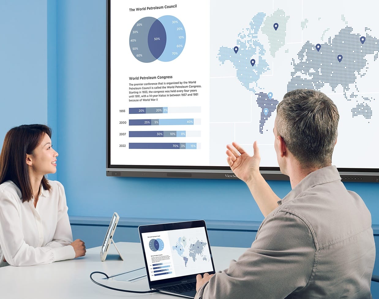 A través del acceso directo a herramientas como Google Workspace y Microsoft 365, junto con el software educativo integrado de ViewSonic, docentes y estudiantes pueden crear, compartir y desarrollar contenido en tiempo real, facilitando una experiencia educativa más conectada y eficiente.